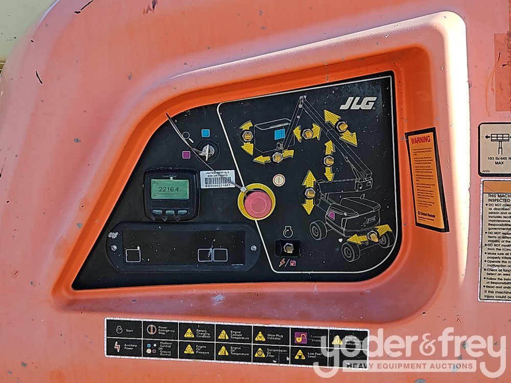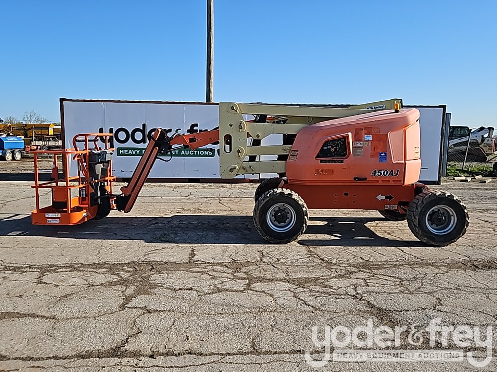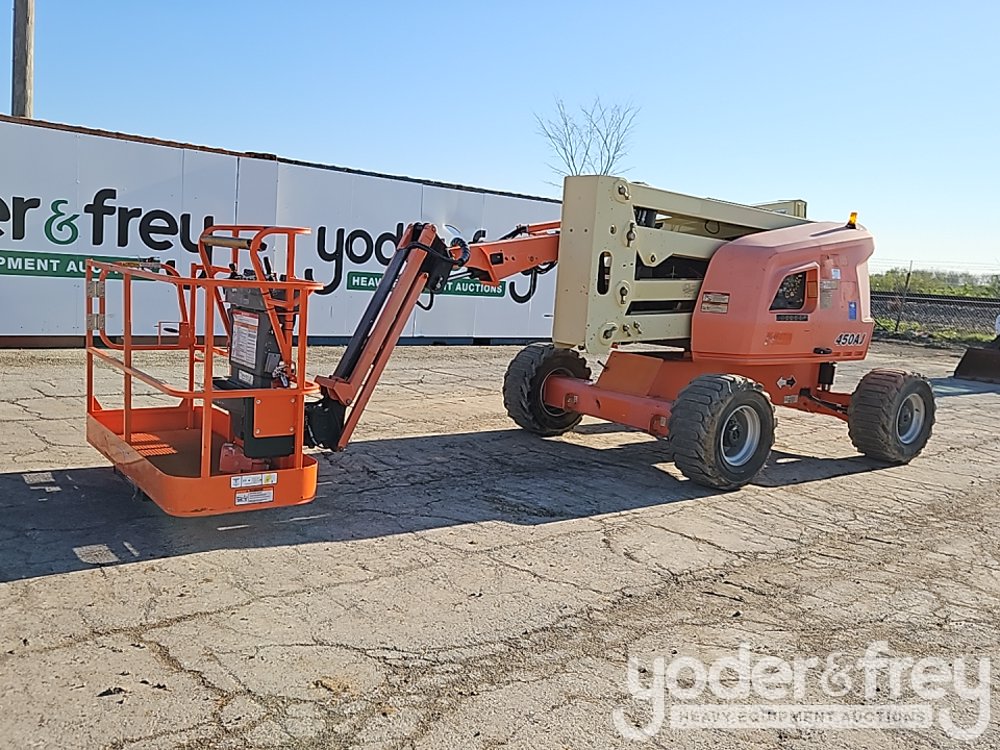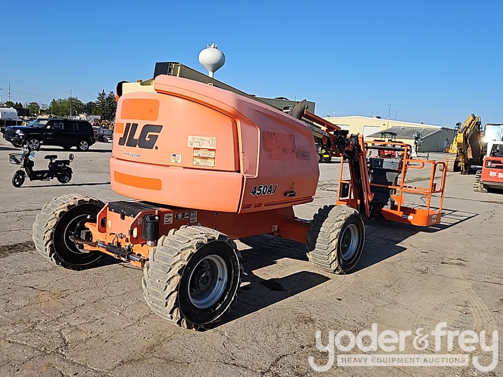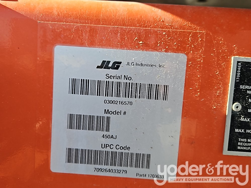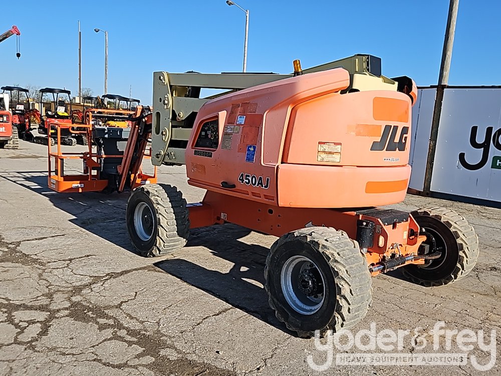 2016 JLG 450AJ 45' Articulating Boom Lift, 25' Horizontal Reach, With Jib, DSL, 4WD, 500 lbs max capacity, power to platform, proportional controls, oscillating axle (Meter Reading: 2213 Hours) - 0300216570