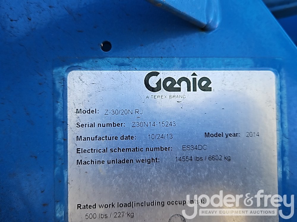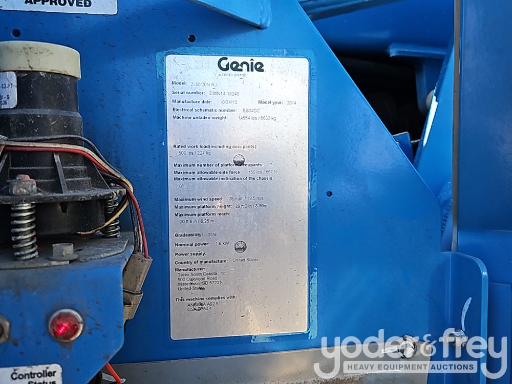 2014 Genie 30' Electric Articulating Narrow Boom Lift, 500 lbs max capacity. (Meter Reading: 654 Hours) - Z30N14-15243